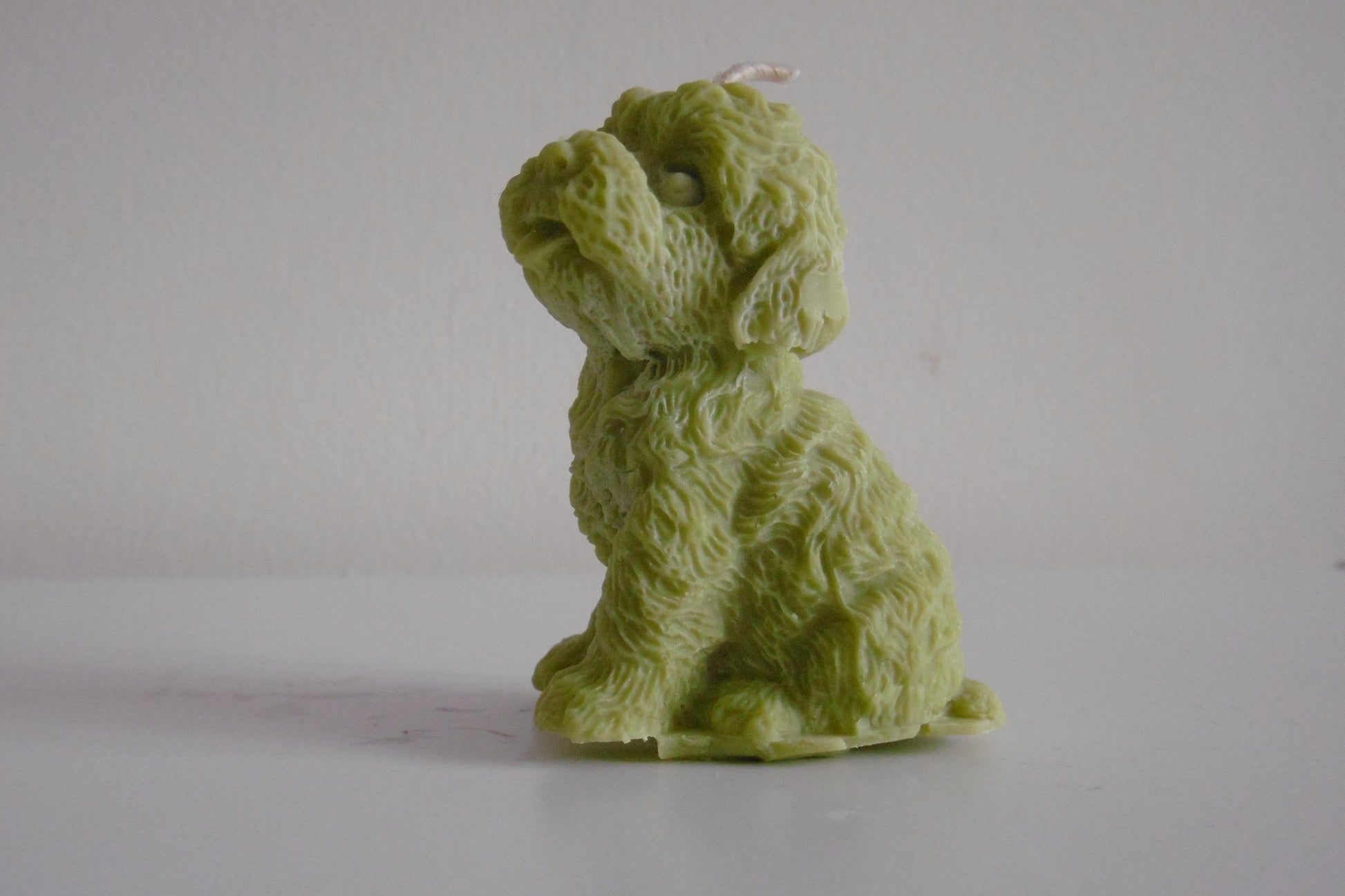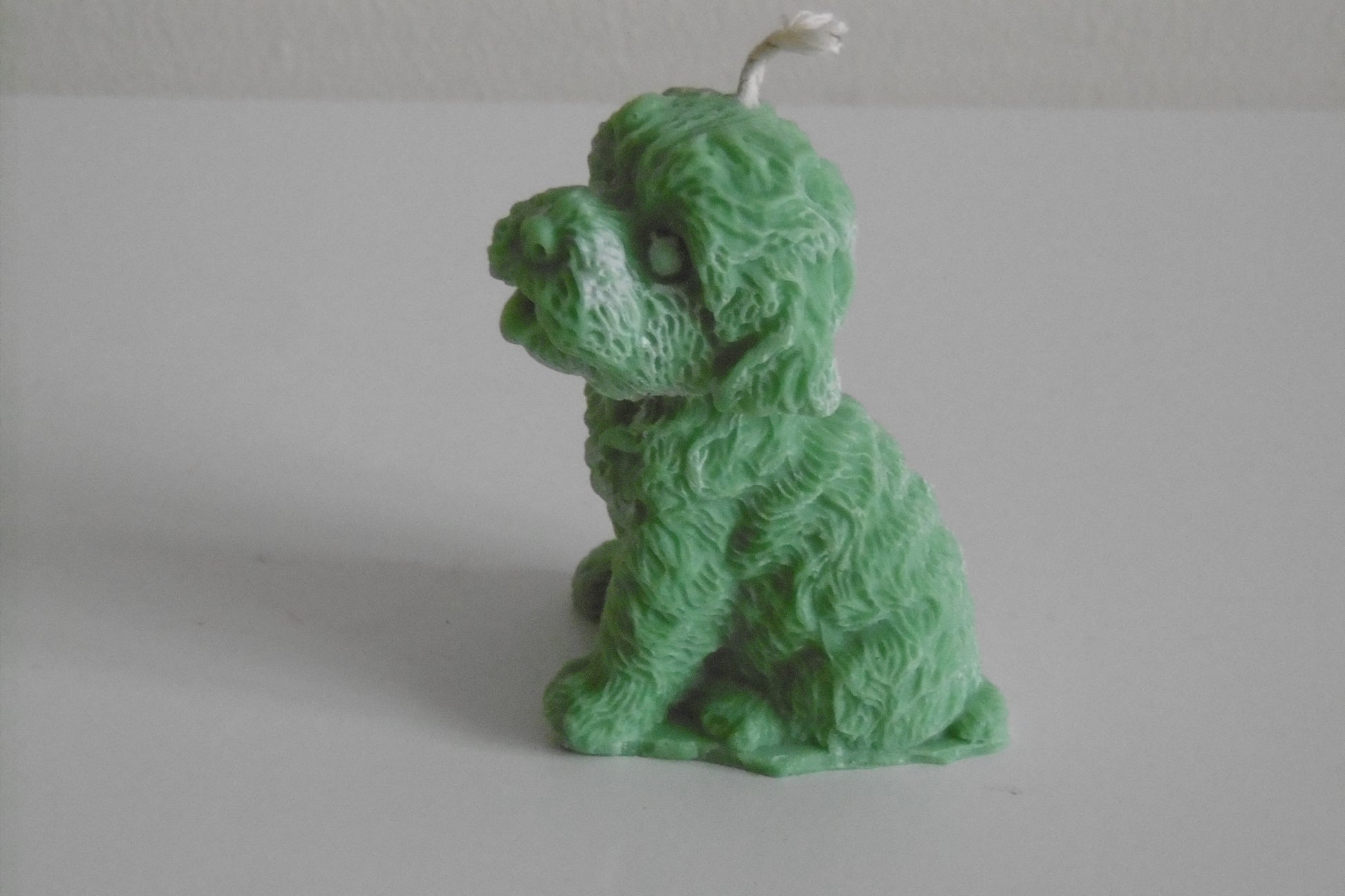 Various coloured scented dog shaped candles made from Bees Wax, to help raise money for #JustForMeandMyDog and also #NoMeNoTrees.